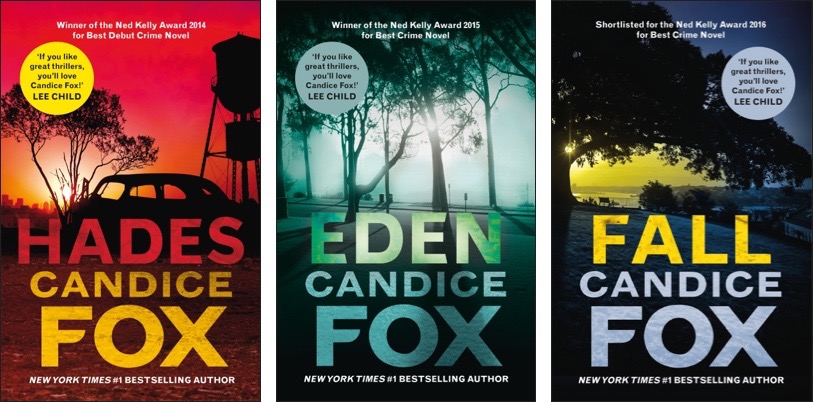 [EB] I completed reading Fall, which is the final novel in what I would call the “Hades Trilogy” by Candice Fox. Hades was Candice Fox’s first published novel, coming out in 2013, and it did very well, winning the Ned Kelly Award for Best First Novel, and shortlisted for Best Debut Crime Novel in the Davitt Awards. Her second novel, Eden won the Ned Kelly for Best Novel in 2015 and was longlisted for the Davitt. The third book, Fall, was shortlisted for the Ned Kelly in 2016.