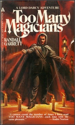 Against this interesting background, Garrett places his Sherlock Holmes-analogue, the investigator Lord Darcy, and his Watson-esque assistant, the Master Sorcerer Sean O’Lochlainn, tasked with solving a baffling locked-room mystery at a magician’s convention.