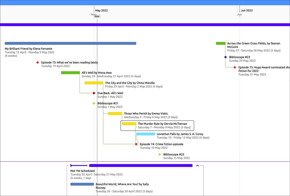 Yes, I now actually have a reading schedule. I need it to plan my reading because of the demands of the podcast and of this newsletter. At the moment, it looks like this (click to see it enlarged in your browser):