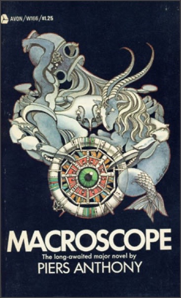 We start with a young man called Ivo. He’s of mixed race, with darkish skin. As the novel opens, he’s being followed. The setting is of some American town or city, and the time is meant, I guess, to be in the 1980s or 90s, in other words, a few decades in the future from when the book was written. Ivo fears that the beefy White man following him means him harm. It turns out that he’s wrong, but there’s lots of (completely unnecessary) mystery about what’s going on as Ivo is driven to Cape Kennedy and shot off in a rocket to meet up with someone he used to know called Brad who is aboard a space station housing a fantastic instrument called the Macroscope.